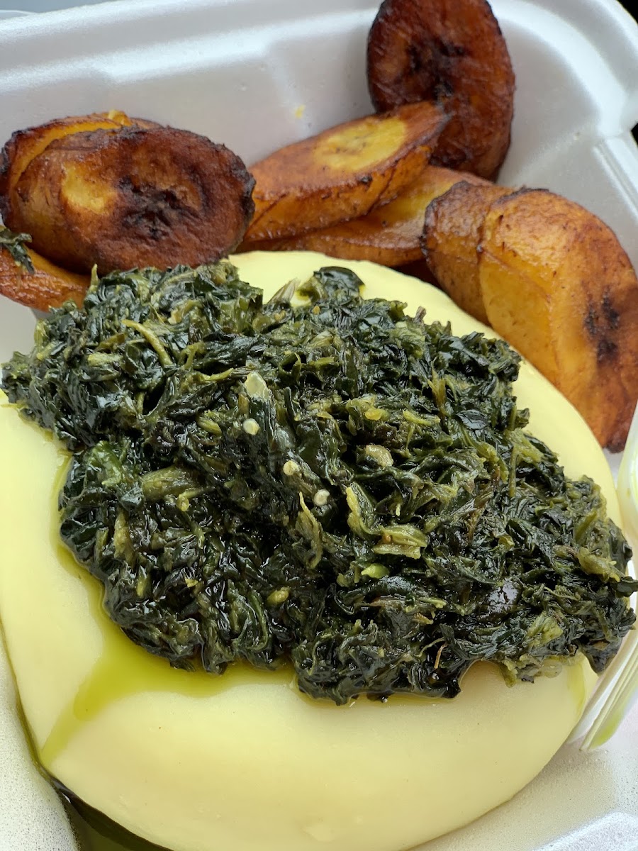 My honest review is wow. I had fufu and eugisi, it had a burst of flavor. The portion size is crazy huge and the beef sticks are so juicy and well seasoned! I enjoyed my meal, and the worker was so nice, she recommended me for my first time there. Won’t be my last, I’m ready to try the fried spinach. Mmmm, only downside is that food is spicy as hell lol my mouth burning but other than that, 10/10!!